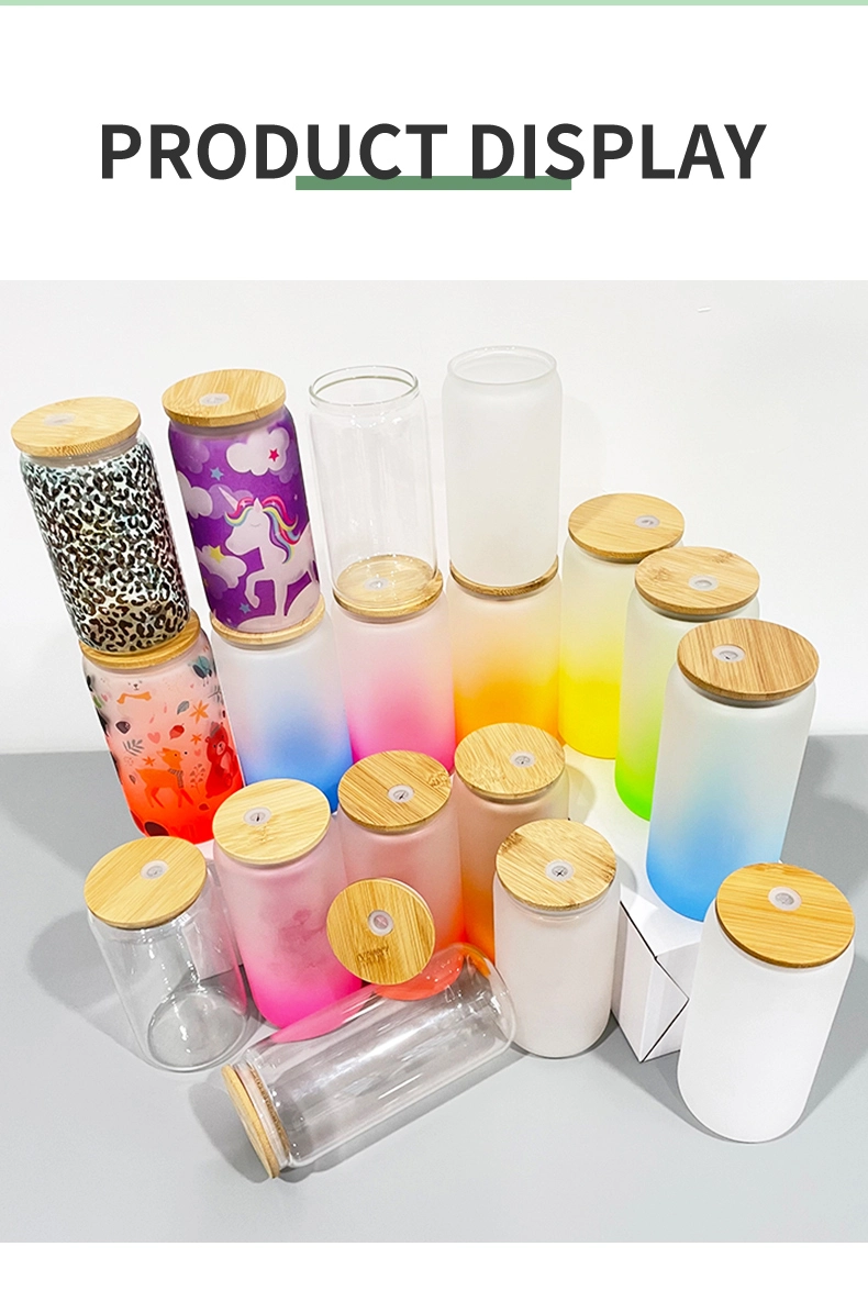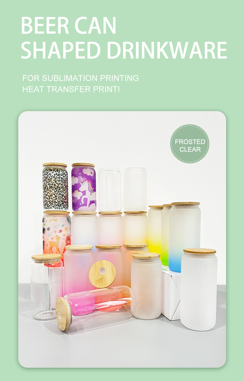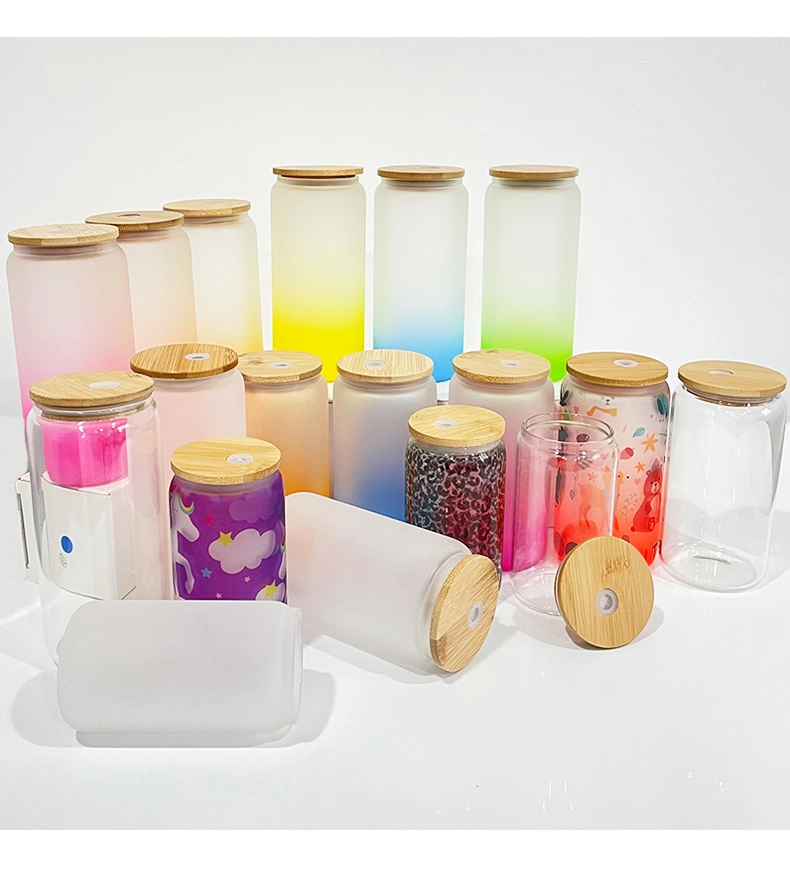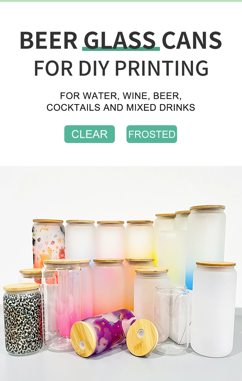 25/50Pcs USA Warehouse 16oz Sublimation Blanks Clear Frosted Beer Glass Can With Bamboo Lid And Plastic Straw