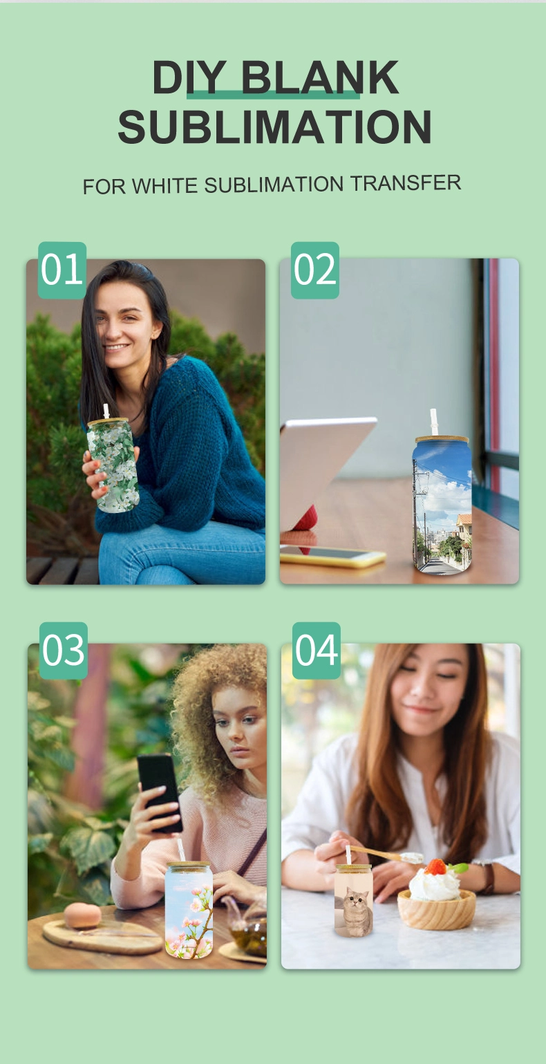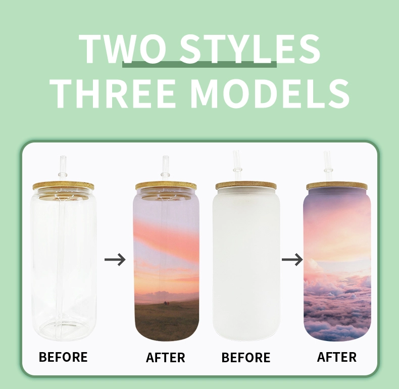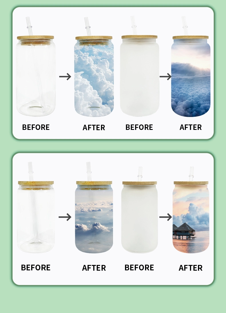 25/50Pcs USA Warehouse 16oz Sublimation Blanks Clear Frosted Beer Glass Can With Bamboo Lid And Plastic Straw